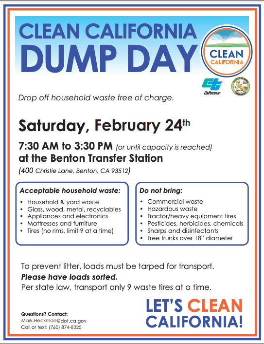 CLEAN CALIFORNIA FREE DUMP DAY: Benton Transfer Station 02/24